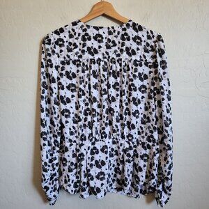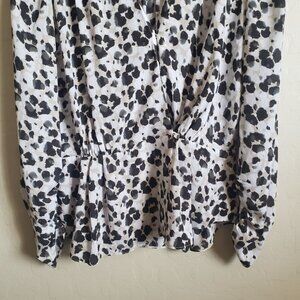 CAbi 5898 Rosette Leopard Wrap Blouse Peplum Top Animal Print Ruched Sleeve Size Women's Small