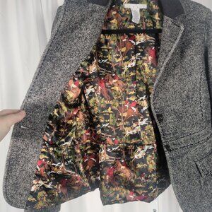 CAbi 629 Women’s Size 8 Coat Tweed Gray Blazer Wool Fox Hunt Horse EUC