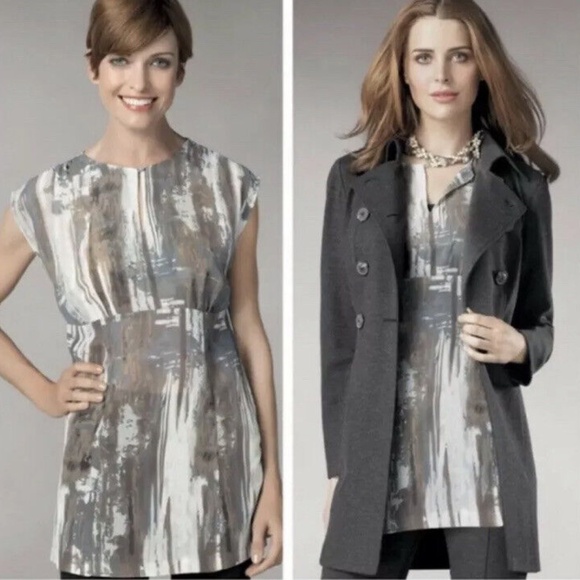 CAbi #651 | Semi-Sheer Cap Sleeve Watercolor Tunic Blouse | Size Small