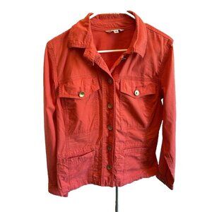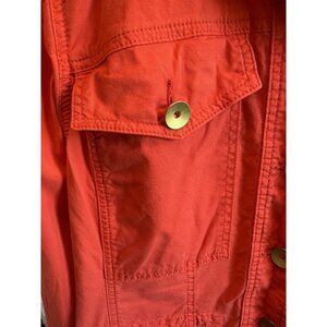 CAbi 727 Taylor Ruffle Back Jacket In Lobster Medium Pockets . Condition is Pre-owned. Shipped with USPS Ground Advantage.