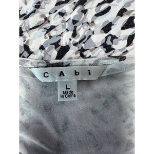 Featuring a drape neckline, this CAbi #734 Lara sleeveless tunic in size L presents an exciting animal print. Styled with a ruched design, it ensures a flattering fit for any occasion.