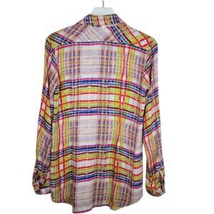 CAbi #797 Modern Plaid Cirque Blouse Roll-Tab Sleeves Shirt - Size XS