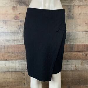 CAbi 998 Solid Black Faux Wrap Knee Length Skirt Size 4