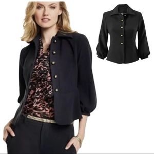 CAbi Abbott Blazer Jacket Black Ponte Knit Button 3/4 Puff Sleeve 3027 Size 4