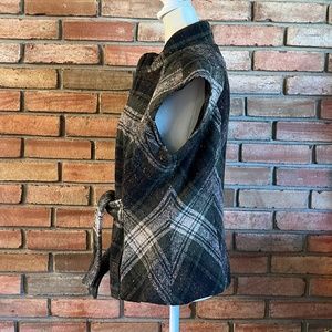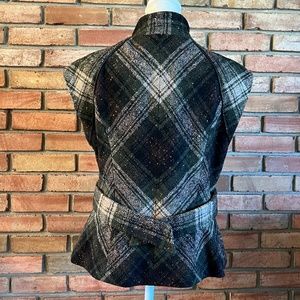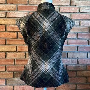CAbi All Tied Up Wool Blend Green, Black, and Grey Plaid Vest in Size Medium