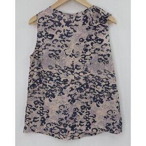 This CAbi blouse is made of 100% silk in a vibrant multicolor animal print design. It features a crew neckline with cascading ruffle accents and a sleeveless style, making it lightweight and perfect for summer, fall, and spring. The blouse has a pullover closure and is size M, suitable for various occasions including travel, weddings, parties, casual wear, and work. The preppy and bohemian-themed top is not personalized and requires hand wash care, adding a touch of classic elegance to any outfit. Some stitching coming undone on right hem. Some slight darkening on under arm areas. Please see photos for representation. Please feel free to ask any questions.