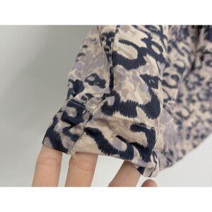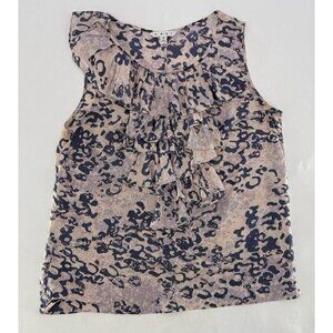 CAbi Animal Print Cascading Ruffle 100% Silk Popover Blouse Size M Preppy, FLAW