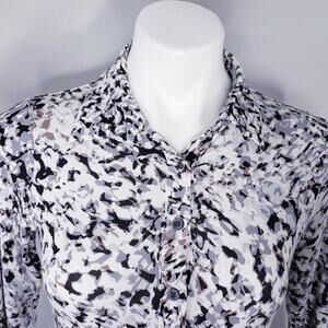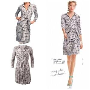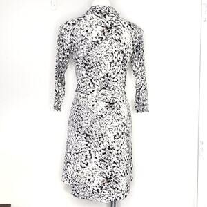 CAbi shirt dress in fun black/white/grey pattern.Animal Print Shirt Midi Dress in a soft stretchy jersey knit with matching waist tie. Size XS.