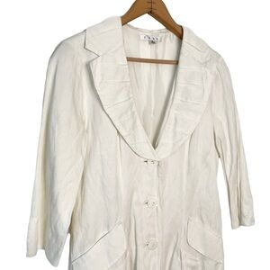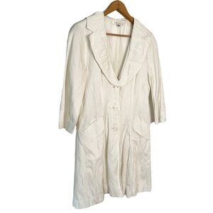 Excellent condition! Ivory tone. Great coat for a wedding dress! Size S. 18.5” armpit to armpit. 34” length.
