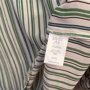 CAbi women’s awning striped blouse in a size XS. Style #5893. Shirt features a green, white, and black striped pattern, v-neck, and 3/4 sleeves. In excellent condition- no stains, holes, or flaws. Open to offers and bundles. Fast shipping!!