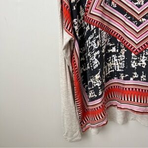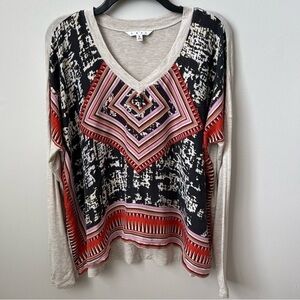 CAbi Aztec Print Silk Scarf Handkerchief Top Long Sleeve V-Neck Loose Fit Boho M