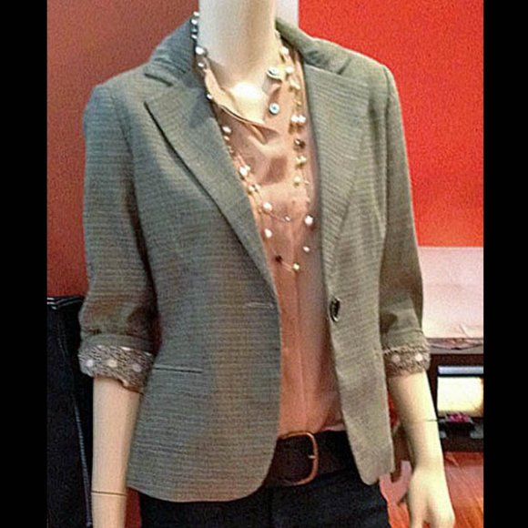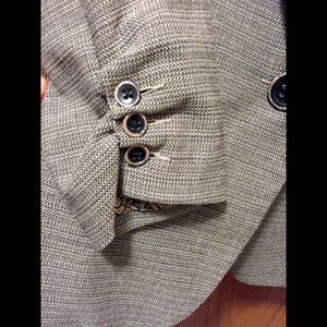 Beautiful tweed blazer with great detail: shirring at collar, cuffs, and back. Beautiful, cuff lining detail as well. 😍