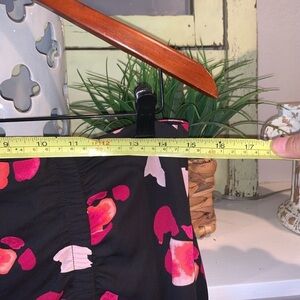 CAbi Black Pink Petal Ruched Faux Wrap Zip Up Knee Length Skirt NEW Size M #5513. Perfect summer skirt