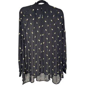 CAbi Black Sheer Floral Embroidered Blouse Size XL, Style 5338