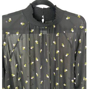 Cabi blouse, black sheer floral top, embroidered blouse, romantic boho blouse, sheer high neck top, flowy long sleeve blouse, Cabi XL, floral embroidered shirt, holiday blouse, dressy sheer top, layered outfit blouse, feminine workwear, fall winter top, Cabi embroidered floral sheer