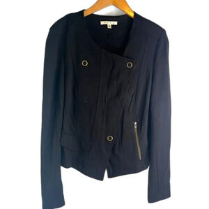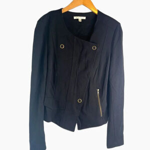 CAbi Black Slant Front Zip Long Sleeve Ponte Cardigan Moto Jacket Sz MD