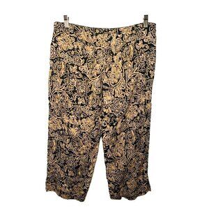 CAbi Black Tan Drawstring Waist Cropped Capri Pants Size M. G-704