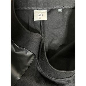 Made of 78% rayon, 19% nylon, and 3% spandex. Feature a wide elastic waist band with a vegan leather strip down the sides. Laying flat measures 13.5" in the waist, 17" in the hips, 9" rise, and 30.5" inseam . Be sure to check out all of my other CAbi items!