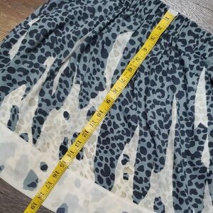 This chic mini skirt from CAbi showcases a playful leopard print in a sophisticated black and gray palette. The smocked waistband offers a comfortable fit, ideal for casual outings or resort wear. Its modern design adds a stylish touch to any ensemble. lightweight sheer fabric.