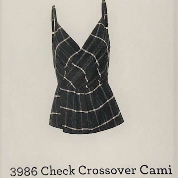 Stylish crossover cami with check pattern. Features adjustable straps. Perfect for layering or wearing alone.