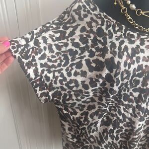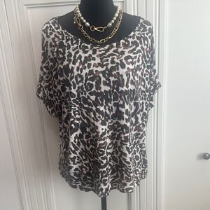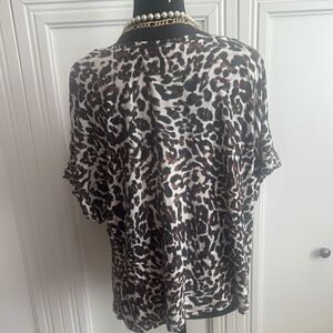 CAbi Black and Brown Boxy Short Sleeve Animal Print Blouse