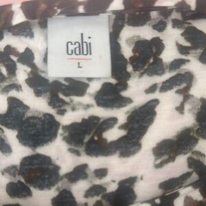 This CAbi blouse features a relaxed, boxy fit with short sleeves, perfect for a comfortable yet stylish look. The black and brown color palette adds a touch of sophistication, while the soft fabric ensures ease of movement. Ideal for casual outings or a chic day at the office.