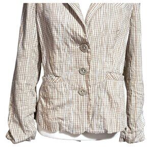 Cabi Blazer Jacket Womens SIze M Tan White Plaid Seersucker