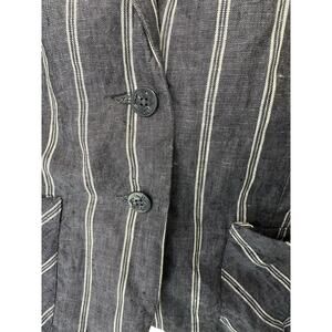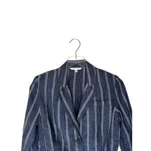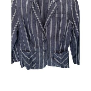 CAbi Blazer Singel Breasted Work Office Blue White Linen Nautical Blazer Size 4