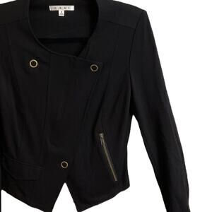CAbi Blazer Women's Size S Black Career Jacket Pocket Zip Asymmetrical Hem