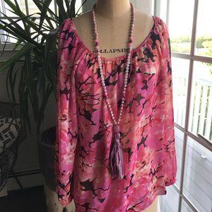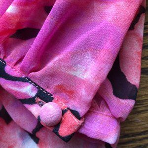 Pink CAbi Blossom Blouse Floral Top, Button Sleeve Closures, (Size S)