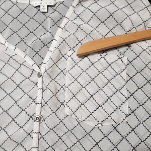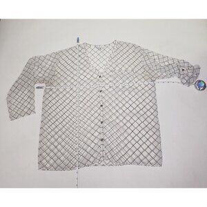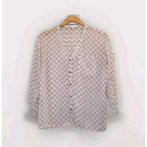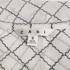 CAbi Sheer Black & Ivory Geometric Print Blouse Citycore Light Academia – Women's Size Small