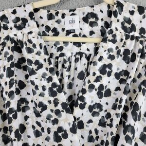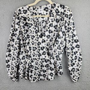 CAbi Blouse Womens Small Office Siren Ruched Sleeves Peplum V Neck Leopard Wrap