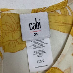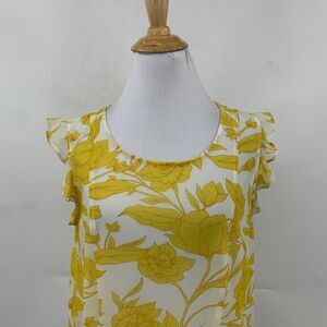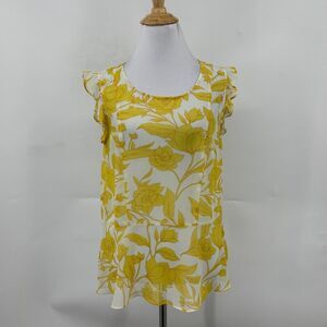 CABI BLOUSE WOMENS XS EXTRA SMALL YELLOW WHITE SUNRISE FLORAL RUFFLE CAP SLEEVES