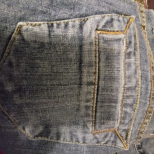 Chic dark blue jeans with button details. Ideal for everyday style. Light stretch. Size 10
