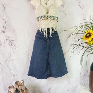 Stylish blue denim skirt. Perfect for casual outings. Size 8 Approximate measurements laid flat 16.5" waist 26" length