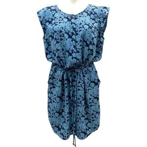 CAbi Blue Floral Java Dress #5265 Drawstring Waist Above the Knee Women's Large