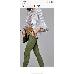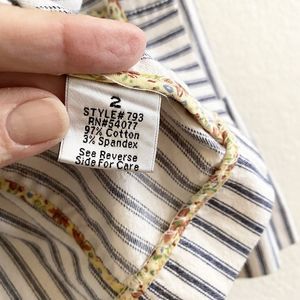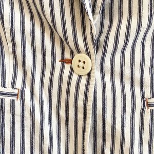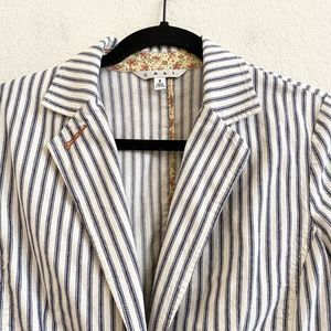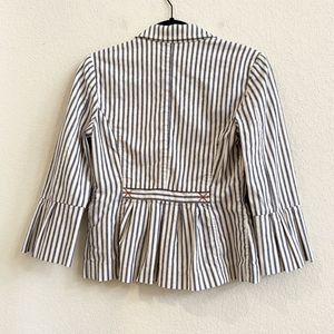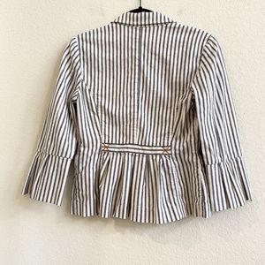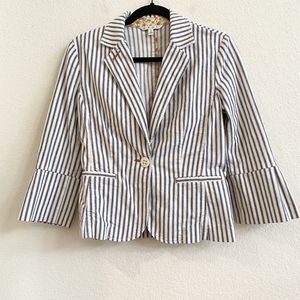 CAbi Blue Striped 3/4 Sleeve Blazer Jacket Womens Size 2 Bell Sleeve Pockets