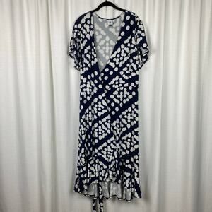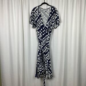 CAbi Blue&White Dot Print The Perfect Wrap Dress Sz.XL