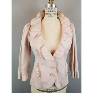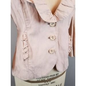 CAbi Blush Pink Ruffled Edge Jacket 3/4 Sleeves