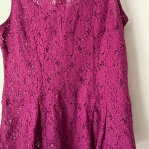 Beautiful lace sleeveless lace top; fit and flare cut; needs a cami unless you are wilder than me. VGUC. smoke-free home. Washable stretch lace.