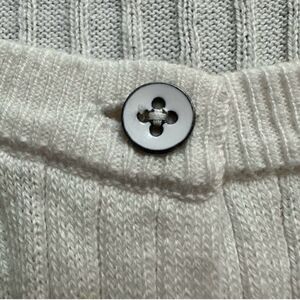 Beautiful long, button down sweater by CAbi in white with black stripes & solid white back. Cotton/spandex blend. L 40” x W 20” pit to pit. Like new.
