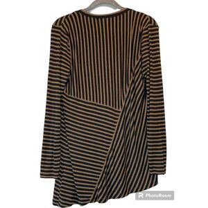 CAbi Brown Striped Slant T Shirt Tunic V Neck light long sleeve size M