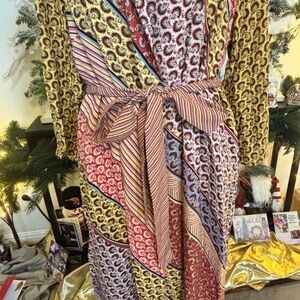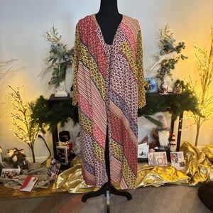 Fun Top and Jacket BOHO style pairing. Kimono tunic patchwork belted with pockets pairs perfectly with the cami top. Goes great with so many looks and is extremely easy to wear. The cami runs true to size while the jacket runs large. Gently used