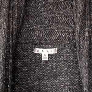 CAbi Cardigan Size S Gray Fringed Chunky Cable Knit Wool Lagenlook Boho Hippie