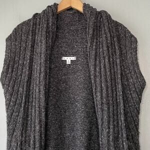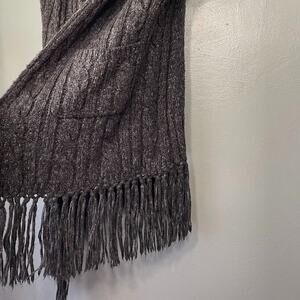 CAbi charcoal gray marled cable knit fringed chunky sweater knit sleeveless fringed cardigan in Excellent pre-owned condition! # 163