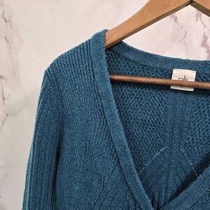 CAbi Cardigan Womens Medium Blue Sweater Deco 5016 Knit Button Up V Neck
