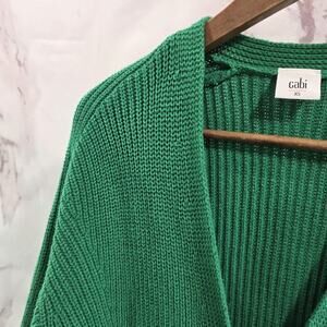 CAbi Cardigan Womens XS Green Lucky Sweater 3709 Snap Balloon Sleeve Cotton