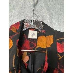 CAbi Catherine Ruffled Semi Sheer Blouse Black Red Floral Long Sleeves Size Medium