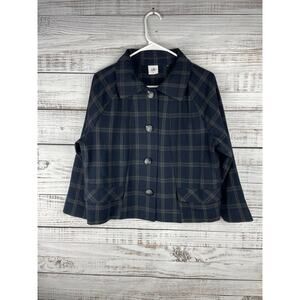 CAbi Connery Navy Green Plaid Blazer Jacket Medium Academia Career Business Punk