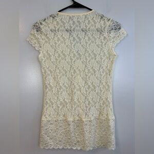 CAbi Cream Lace Cap Sleeve Fitted Sheer Blouse Size XS
